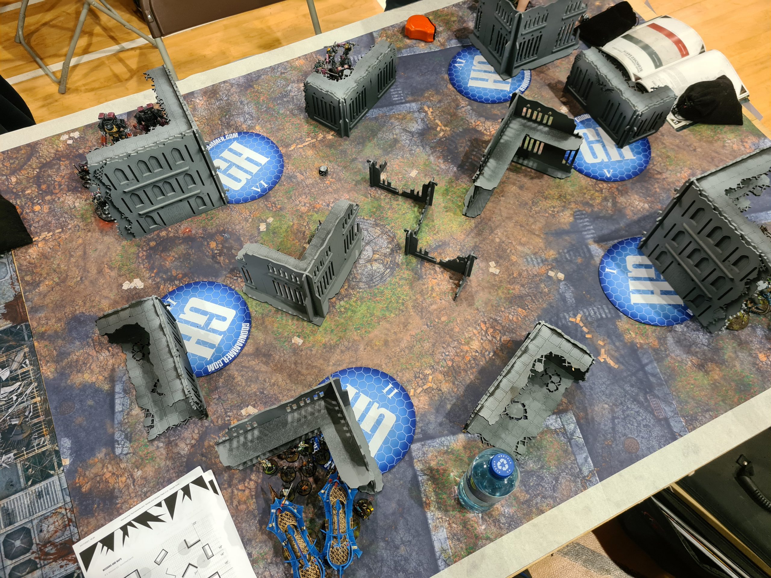 Unless otherwise noted, a player controls an objective marker while they have more models within range of it than their opponent does. A model can only be counted towards controlling one objective marker per turn – if one of your models could be counted towards controlling more than one objective marker, you must select which one they are counted towards that turn. AIRCRAFT units and units with the Fortifications Battlefield Role can never control objective markers – exclude these units when determining which player controls an objective marker.