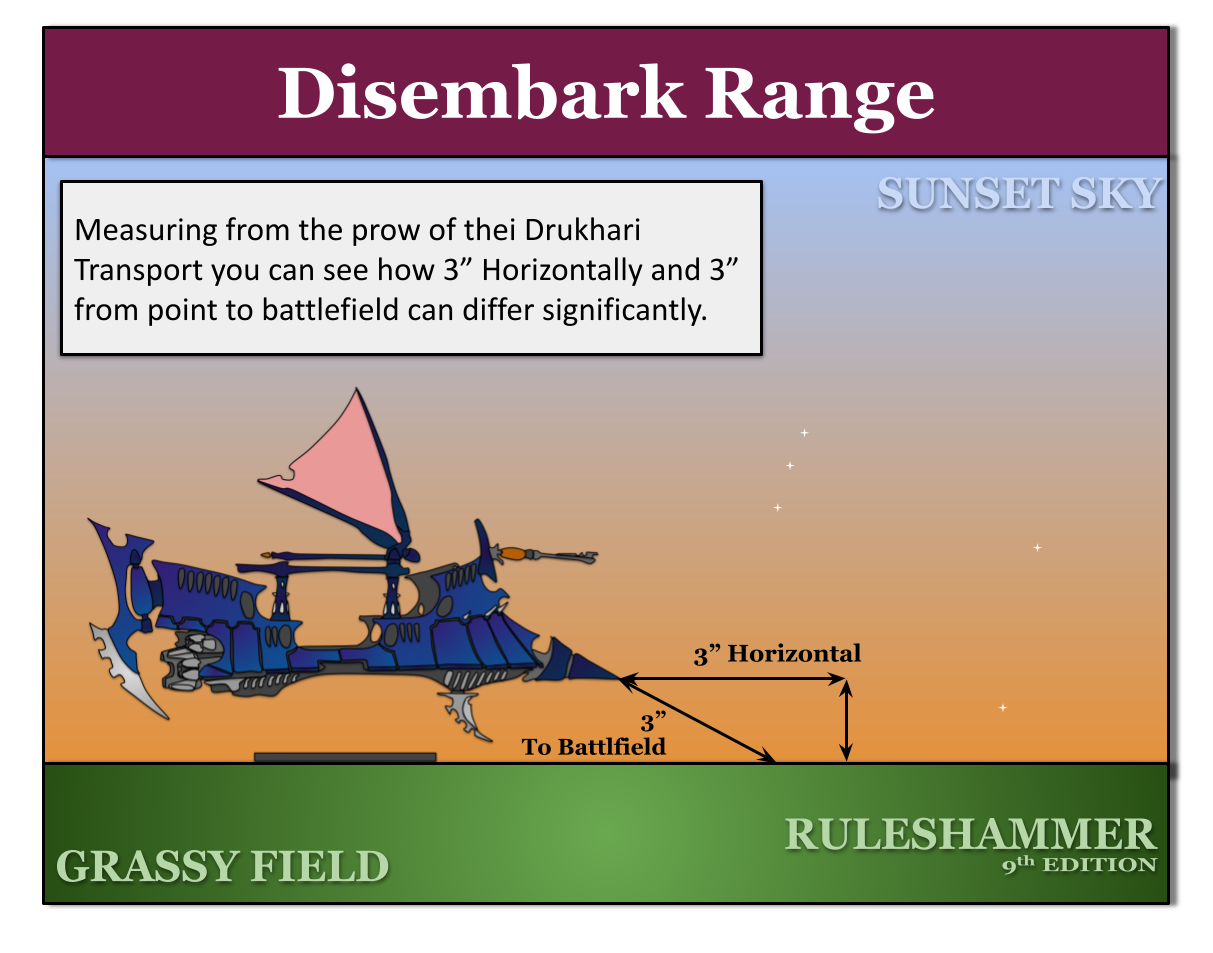The important thing to note is how measuring horizontally from these transports can get very different results to measuring from the hull to the base of the model. Here's an example: