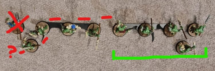 This is really useful for combat units that also need to control board space: Savage Orruks spring to mind, or anything on small cav bases that wants to fight (such as Spider Riders). In practice that will probably mean getting roughly 8 out of 10 into combat, with minimal risk to coherency-removals.