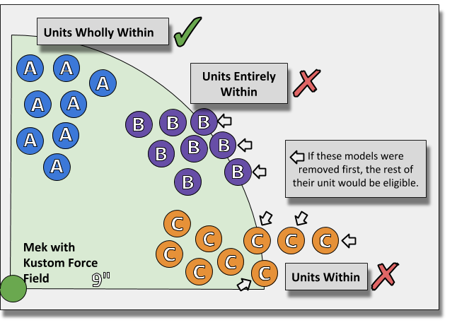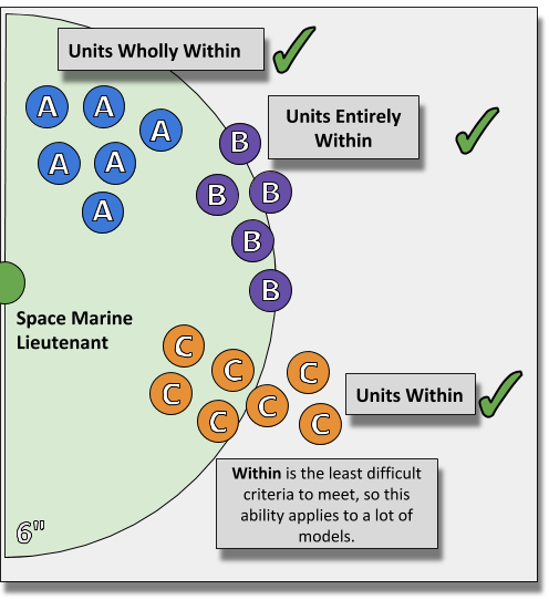 Here we are again, looking at the subtle differences between “within, wholly within and entirely within”. It crops up like an Genestealer Cult infestation, never truly gone just out of sight. The wording used in Aura abilities is usually quite clear but it’s not without its confusing bits.