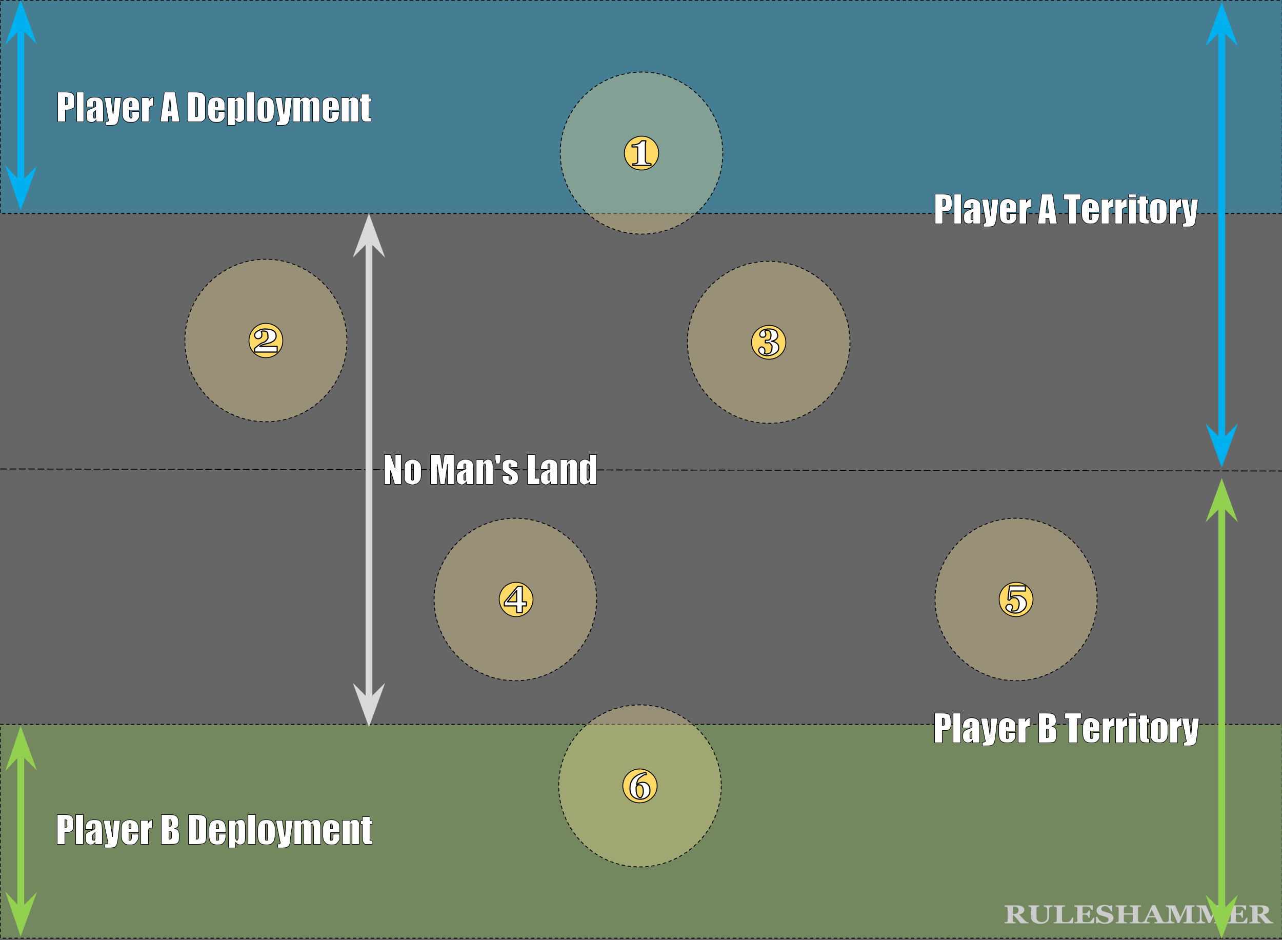 And No Man's land is the space between deployment zones. The diagrams for each mission do have these areas noted when relevant so always check your mission pack.