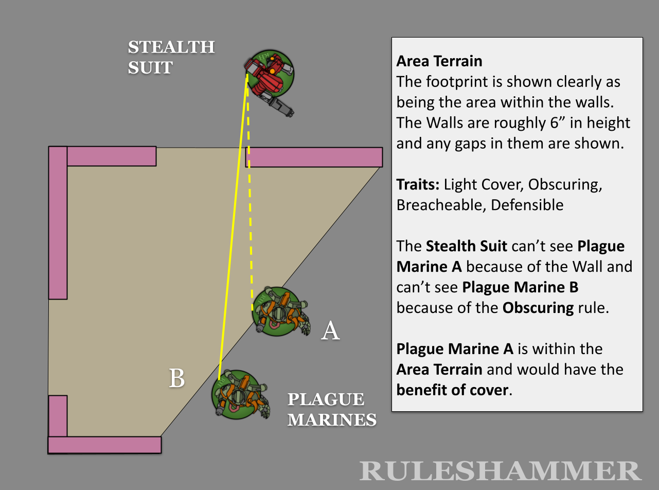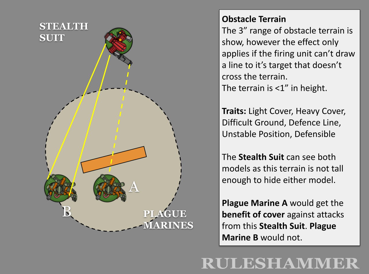 For this board I'm using a mixture of three key types of terrain, varying the shapes and size of some pieces. This section explain the basics of each type of terrain I'll be using in this game, for more detail on the entire Terrain Rules system in 9th edition check out my