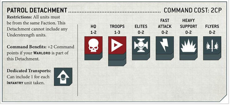 Both Forces are made up of a standard Patrol Detachment, so they must have at least one HQ and 1 Troop unit. You can read more about how army