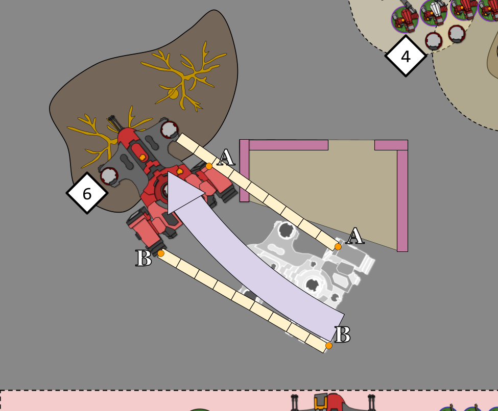 (6) has also made use of FLY not only to avoid the ruin in its way but to also ignore the -2" movement penalty it would have otherwise received