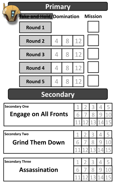 - The Primary Objective for the mission awards 2VP at the end of the Turn for controlling an Objective in Enemy territory. That's Objectives 1, 2, or 3 in the diagram above. 1 is going to be pretty hard to reach, but 2 is very much in reach of either the Devilfish (6) (and its embarked unit) or the Stealth Suits (4). The Stealth suits could also likely reach 3 with a good advance roll, but doing so would leave them very exposed.