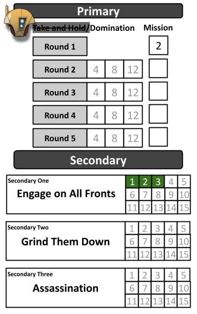 - Taking Objectives 1, 2, and 3 in this turn also has the added impact of preventing the Tau from "holding more" in their next Command Phase for full Primary Objective points.