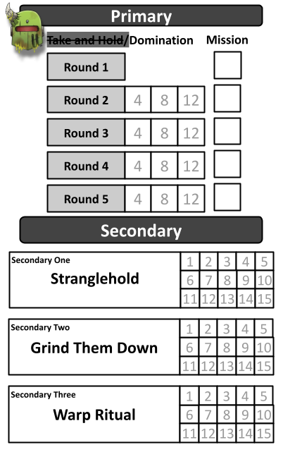 Rob: This is basically why Grind Them Down is a trap for most armies - once you miss those points there's no way to get them back, you have to kill at least one unit per round, and if you're going first your opponent gets all the information they need to stop you.