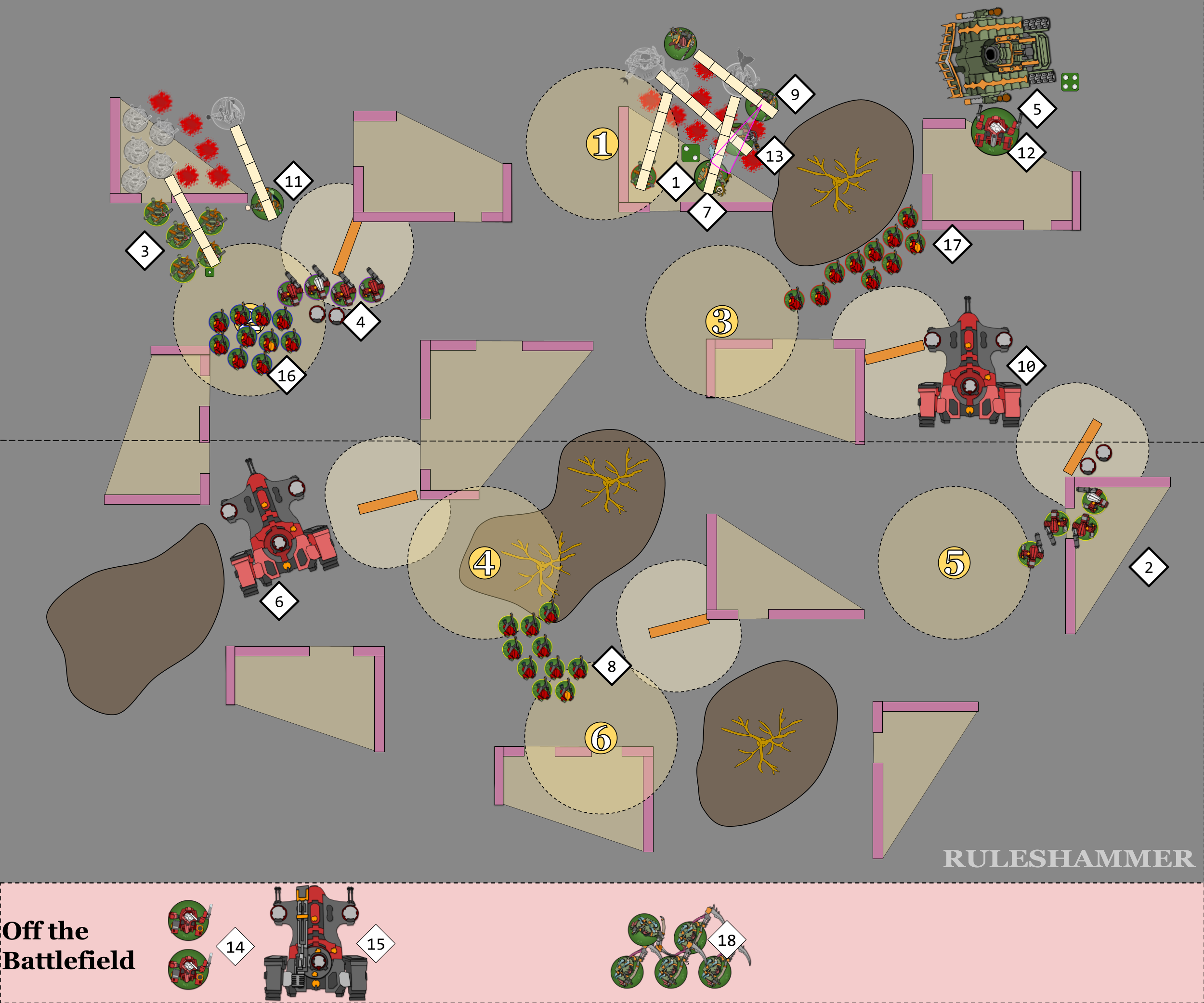 Welcome to Ruleshammer! This week is the fifth "episode" of a series I'm calling Ruleshammer Battle. A step by step explanation of a small game of warhammer 40k. Remember the banner below will take you to the Ruleshammer 9th Edition Compendium, for all the questions I’ve answered for the last few months!
