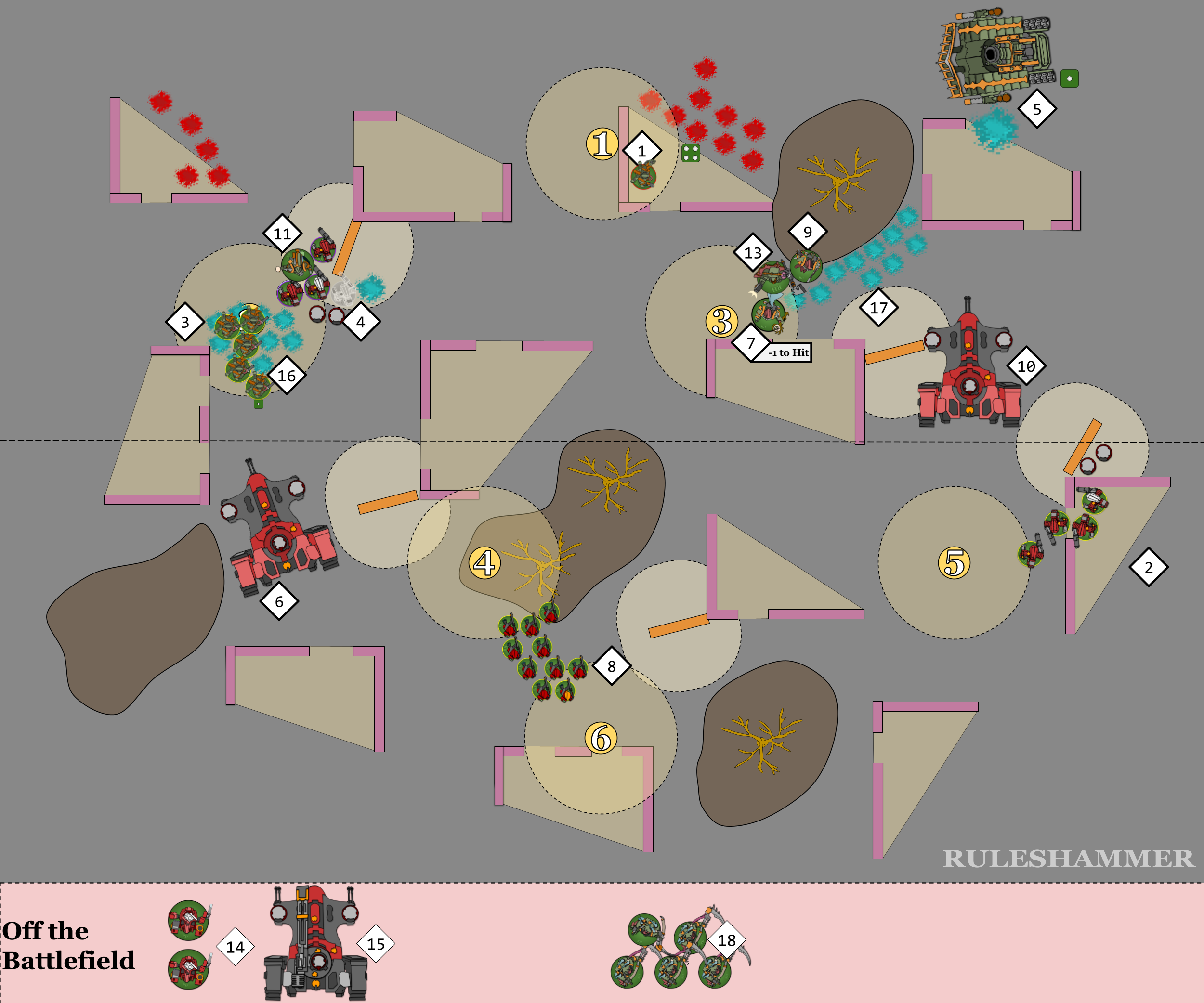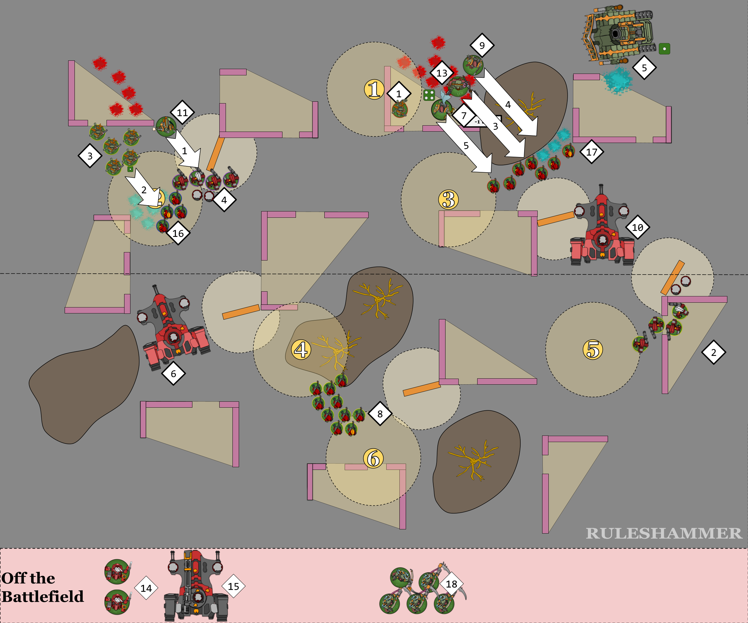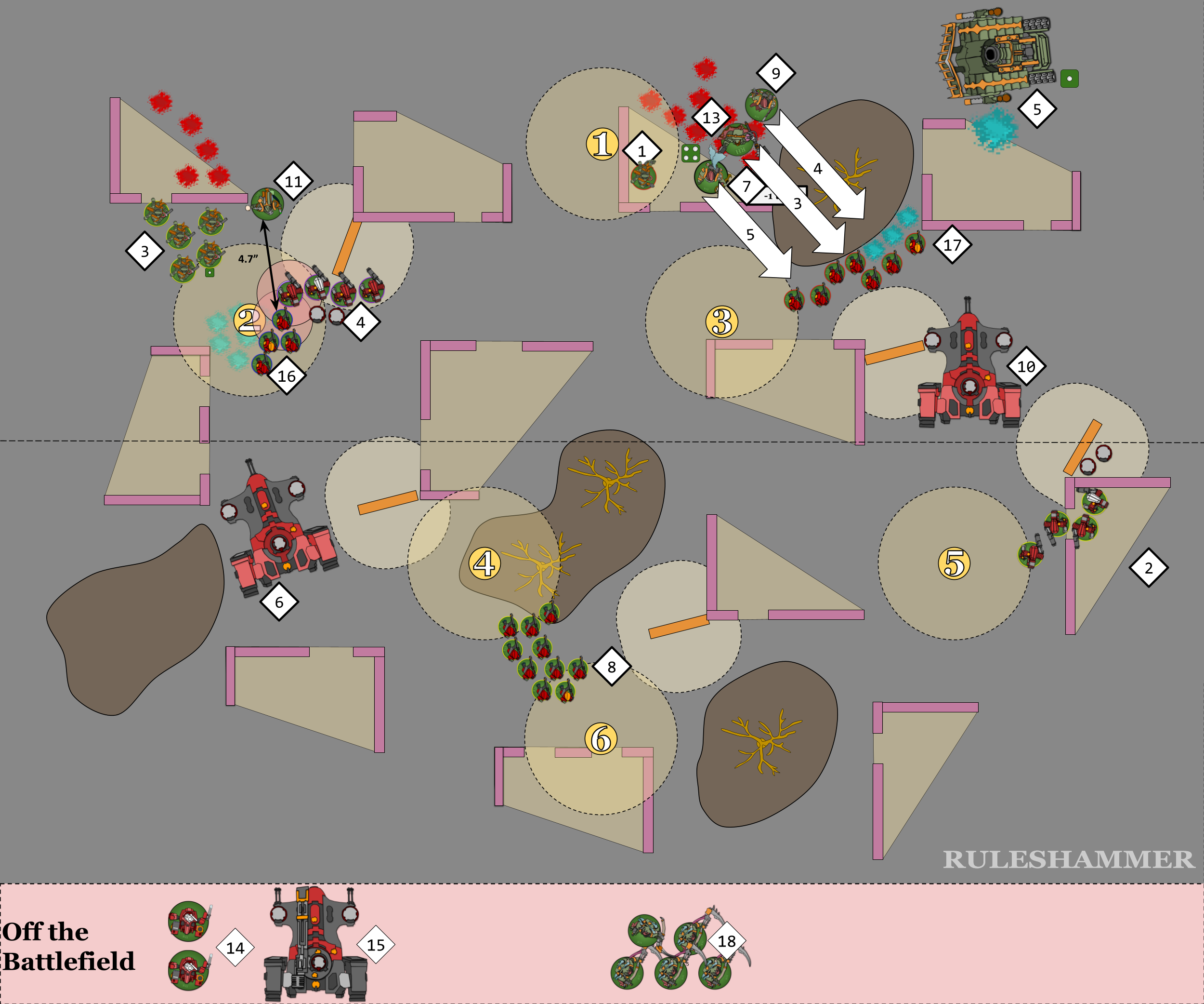 Welcome to Ruleshammer! This week is the sixth "episode" of a series I'm calling Ruleshammer Battle. A step by step explanation of a small game of warhammer 40k. Remember the banner below will take you to the Ruleshammer 9th Edition Compendium, for all the questions I’ve answered for the last few months!