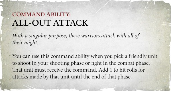 Usable whenever a unit attacks or is attacked in the combat or shooting phase, All-out Attack and All-out Defence have seen a facelift, not just in their usage but in their effects.