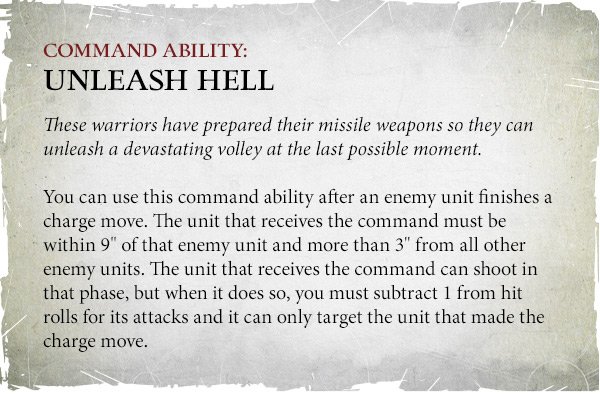 As mentioned before, we will cover the mechanics of Unleash Hell in it’s own article, but it’s important simply to note that charging enemy units that are themselves ranged, or near ranged units could now come with a potentially deadly response.