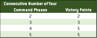 For example, in your third Command Phase, if you have controlled that objective marker with a DARK ANGELS unit for three of your Command phases consecutively, you will score 3 points on that turn.