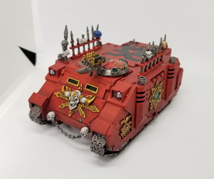 So if for some reason your transport ends up not having any units inside it, it ends up counting as destroyed during the first battle round. Every time a unit is destroyed you get a BTP, so this suggests you'd start the game with 1 BTP as your Rhino is immediately destroyed. However, it wasn't destroyed during a phase, so you won't get the bonus BTP at the end of a phase for a VEHICLE unit having been destroyed.Tags: chaos | 40k | world eaters | Warhammer 40k | Khorne | Ruleshammer | BLOOD