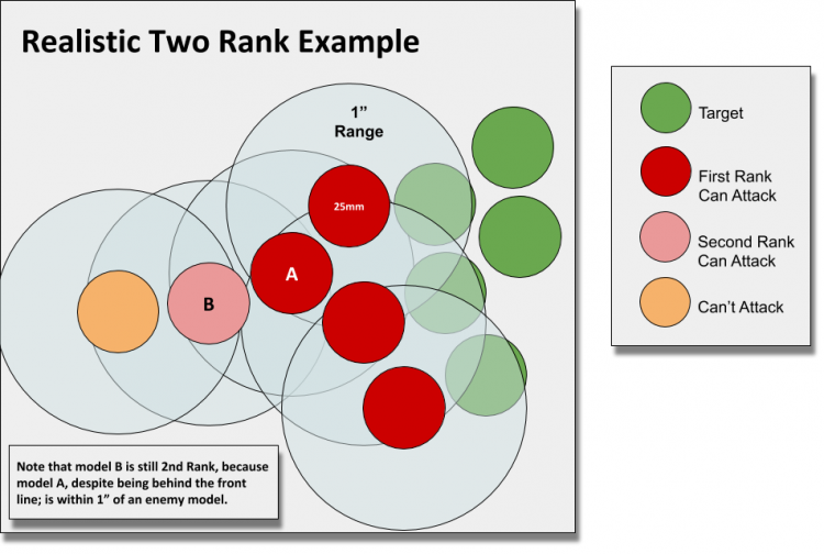 Q: In the Fight phase rules, under Choose Targets, the third sentence states ‘This represents the unit fighting in two ranks’. Does this mean I should only fight in two ranks even if I can physically fit more than that (such as with 28mm and 32mm bases), or is this just an abstract description of what this rule does?A: This was intended to be an illustrative piece of text, creating an image of how models further back would fight. It was not intended to limit the actual number of models that are able to fight. The number of models that can fight is described in the first and second sentence.