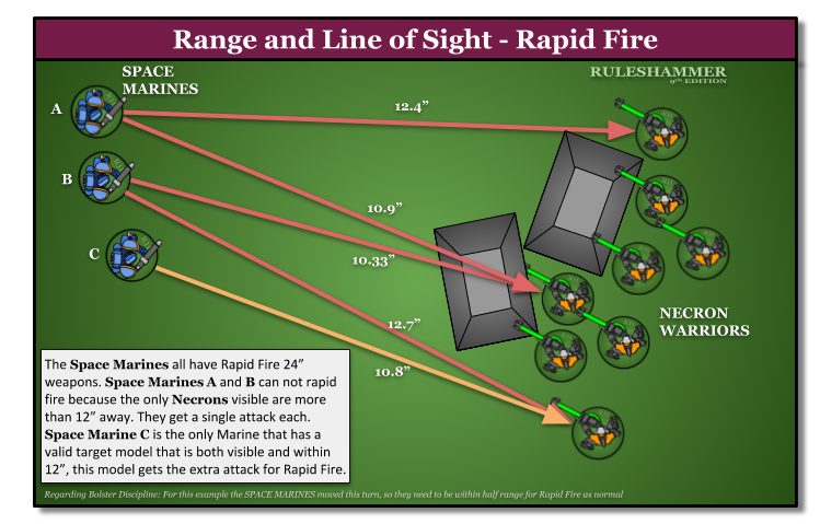 When a model shoots a Rapid Fire weapon, double the number of attacks it makes if its target is within half the weapon's range.