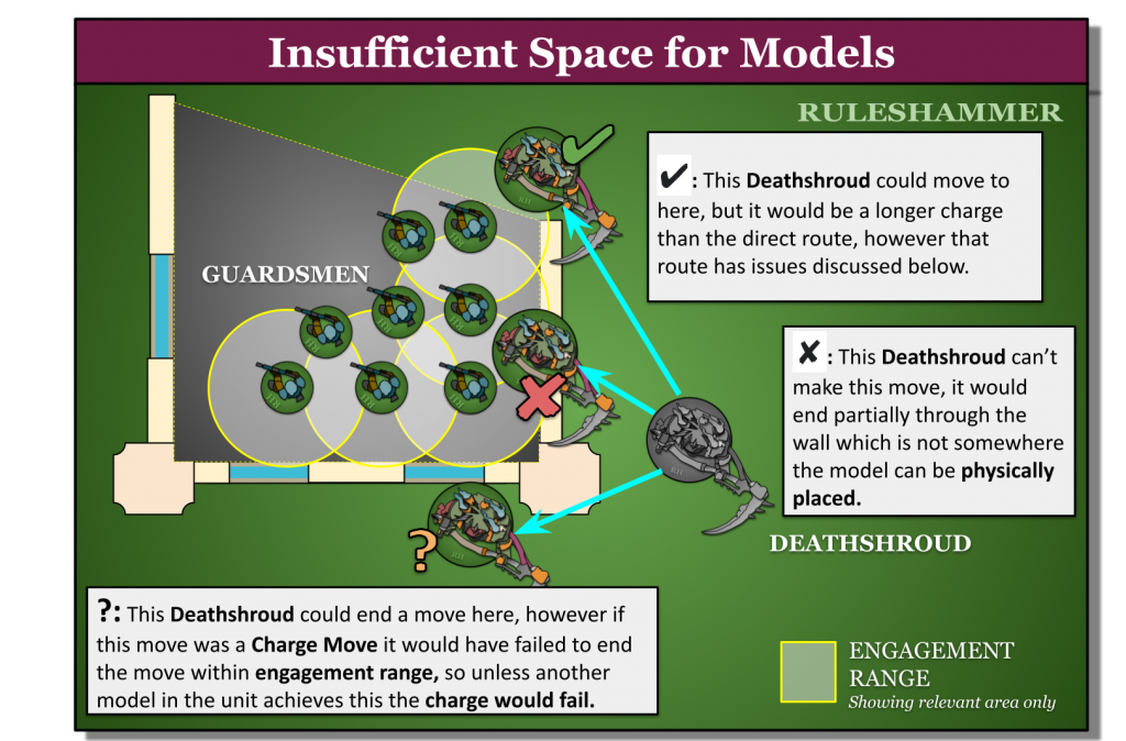 so whilst you can place models in positions where it's hard to get them to balance and then decide to put the model in a safer location to avoid damage if it falls, this hint/tip is pretty clear that models must be placed where it's physically possible to place them. This does lead to situations where the gap is insufficient for a model to move through into engagement range for instance during a charge.