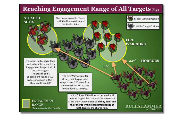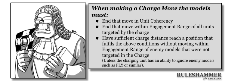 To make a charge move, the unit’s charge roll must be sufficient that it is able to end that move in unit coherency (pg 4) and within Engagement Range (pg 4) of every unit that was a target of its charge, without moving within Engagement Range of any enemy units that were not a target of its charge. If this is possible, then the charge is successful and the models in the unit make a charge move so as to fulfill the above conditions. If this is impossible, the charge fails and no models in the charging unit move this phase. [GT2020 Pg72/73, Core PDF Pg19/20]