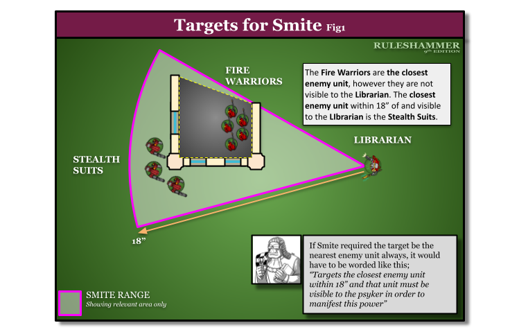 Smites wording in 8th was "If manifested, the closest visible enemy unit within 18" of the psyker suffers d3 mortal wounds...." and in 9th, the wording is now, "If manifested, the closest enemy unit within 18" of and visible to the psyker suffers d3 mortal wounds..." It was argued that the wording change means smite can no longer snipe targets because of placement. If an enemy unit is closer, but the psyker cannot see them, no other unit would meet the requirements for smite targeting as it now has to be the closest enemy unit to the psyker AND visible. Did smite actually change or is my group reading into to this too much? - Michael