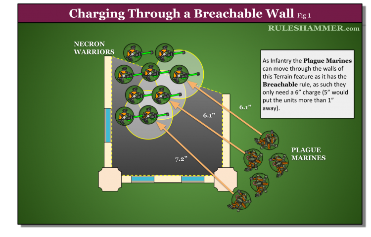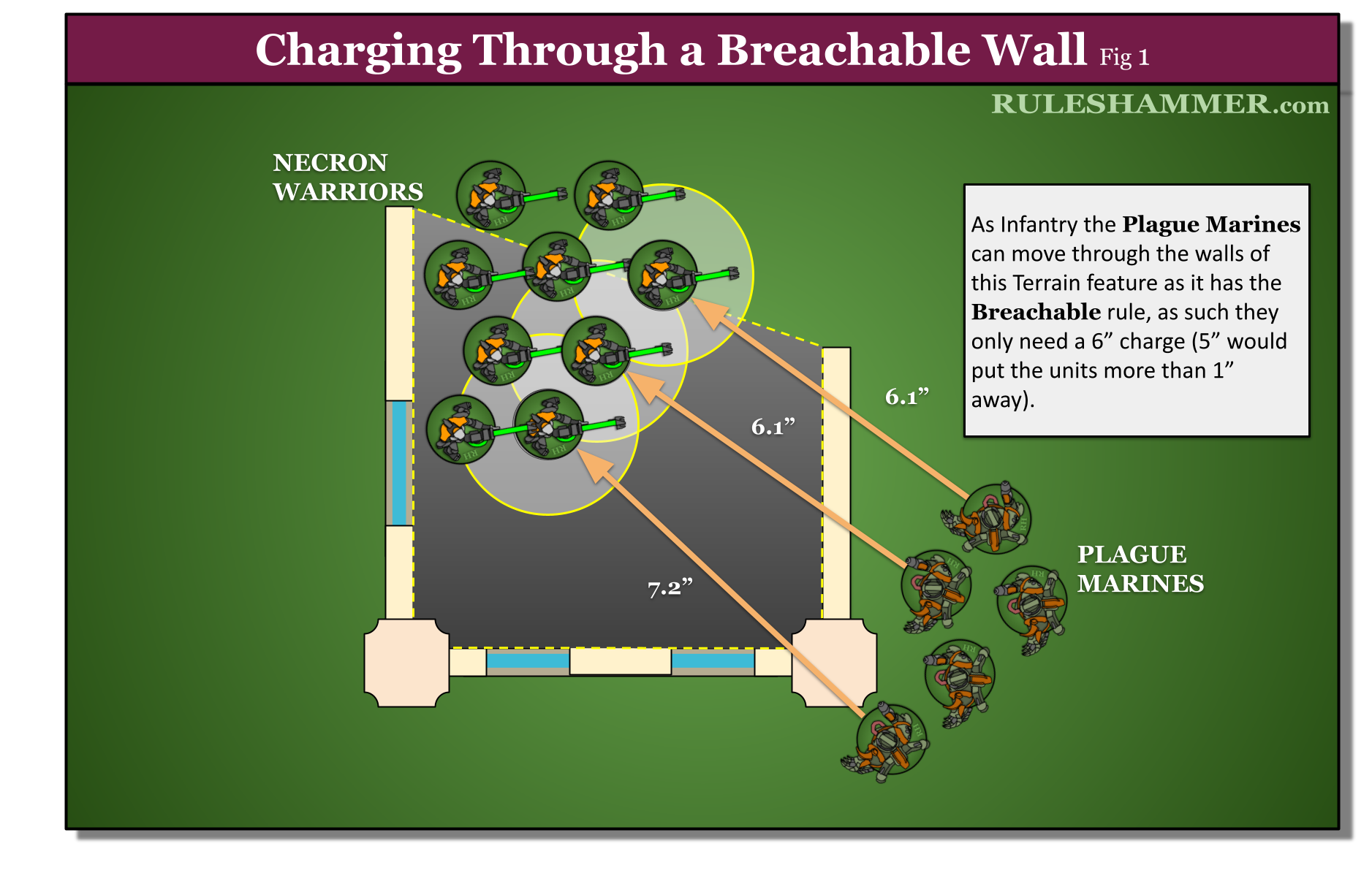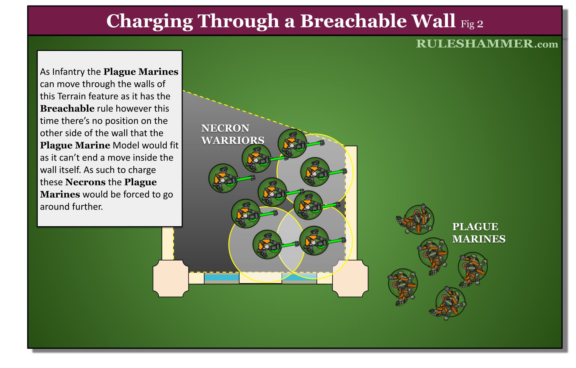 One of the more contentious elements of the charge phase is charging through walls, terrain is a pretty abstract thing in 40k but there's a whole set of interaction here that stretch the imagination. Oddly enemies "coming out of the walls" is the least confusing one.