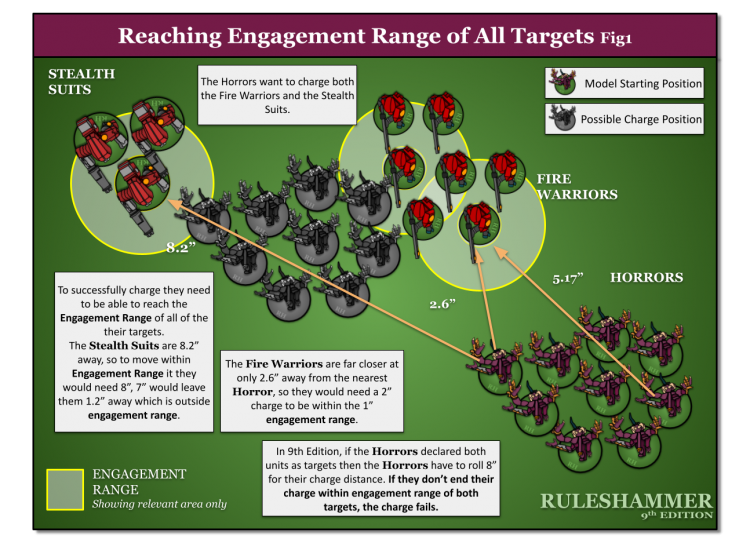 You need to make sure that you’re only declaring on units that you can reach, and that your models have enough coverage to engage all of them.