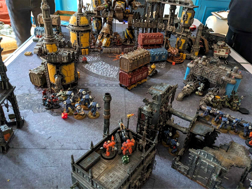 Tom: The set up looked incredible - it was pure 40k, with gantries and fuel pipes leading to the Warhound titan. It was lovely seeing Charlie create this evocative board for the final battle and a joy to fight on.