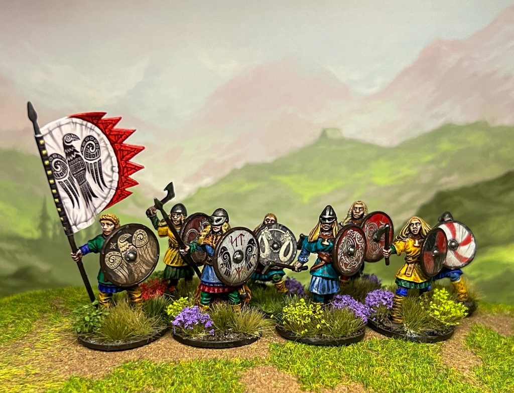 In the end I decided the way to start would be the easy/straightforward option: straight up Vikings for the Age of Vikings and ended up painting 65 minis for this collection (so far). Fortunately, Victrix exist and sell a bag of 60 Vikings for all the plastics you’ll ever need and the quality of these is absurd, much higher than you expect for the price tag of £42. Add on transfer sheets, rulebook, supplement book, a metal Shieldmaiden Warlord and Shieldmaidens from Gripping Beast and I’ve got more minis than I’ll ever use in a single game for under £100. That’s not a price point I’m used to and fear that it’s going to turn into more projects.