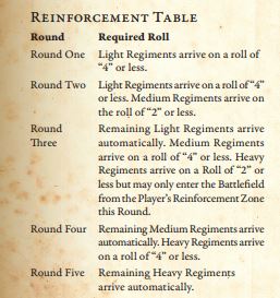 A pair of Heavies – Taking no more than two Heavy units guarantees your army will all arrive by Turn 4, giving them at up to 7 turns to affect the game. You can take more, but you start to risk a bad set of rolls and losing a key unit until Turn 5.