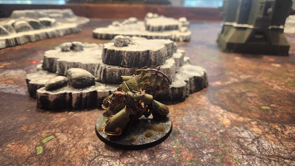 Even when you're using one of the large Games Workshop hills, those only really hit 3" in height with their added rock outcrops, and as you can see in the photo above where I've highlighted the model, that's not enough to even block line of sight to a Myphitic Blight Hauler, a relatively low-profile vehicle. That's a problem given that hills don't directly block line of sight.