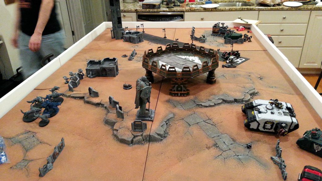What this really does for you is give you a large area you can put other terrain on, and use that terrain to block line of sight, while having a large area where units can stand and interact with each other.
