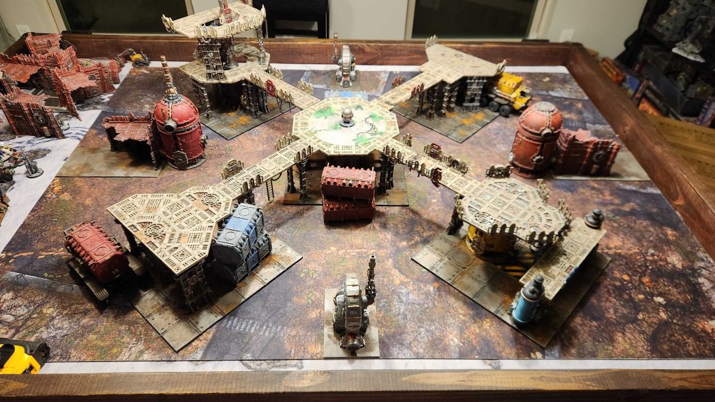 To really make this viable you don't need a ton of space - a 6" diameter circle will give you plenty of room to move around and smash models together, while a 7" diameter circle will give you a full objective marker plus its control area. Ideally you have several of these you can connect together. Having the narrow walkways isn't the end of the world but you need those to be limited and terminate at larger areas so you can take the walkways to larger areas where you can spread out and interact with other units. And ideally those areas feature something worth fighting over, like an objective.