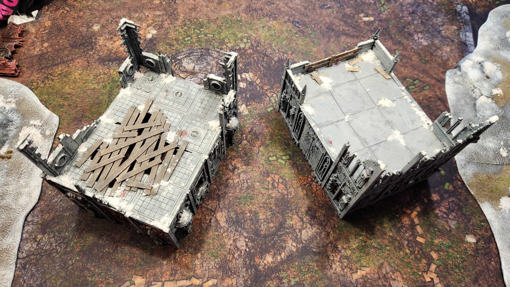 4. Real Estate. You can build raised buildings and platforms, but these take up real space on the battlefield. If that space is closed off, then you're essentially trading off ground floor real estate on your battlefield for raised areas, which can make the table feel even smaller and either advantage melee armies or cause problems if they can't move through your closed off buildings or structures. And if you leave them open underneath, that introduces a different problem...