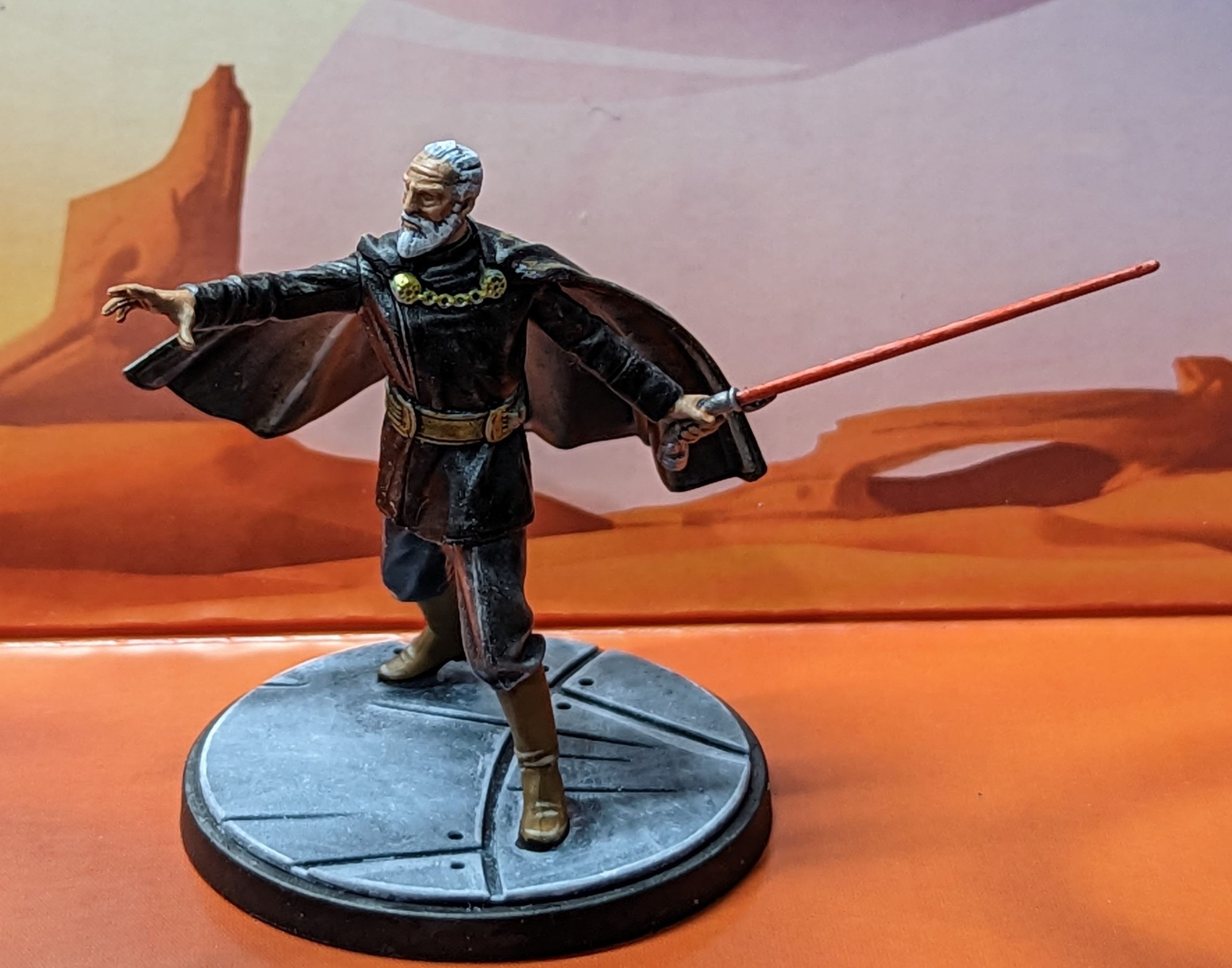 Jango I liked most as a miniature, as I have a soft spot for Mandalorian/the Fetts in terms of miniatures/costumes in the films/series. I'm hoping it will be possible soon to run a non-Jedi all Mandalorian/Bounty Hunter force (I know one bounty hunter primary is coming, but we need two). Jango is the miniature I'm happiest with the paint job on.