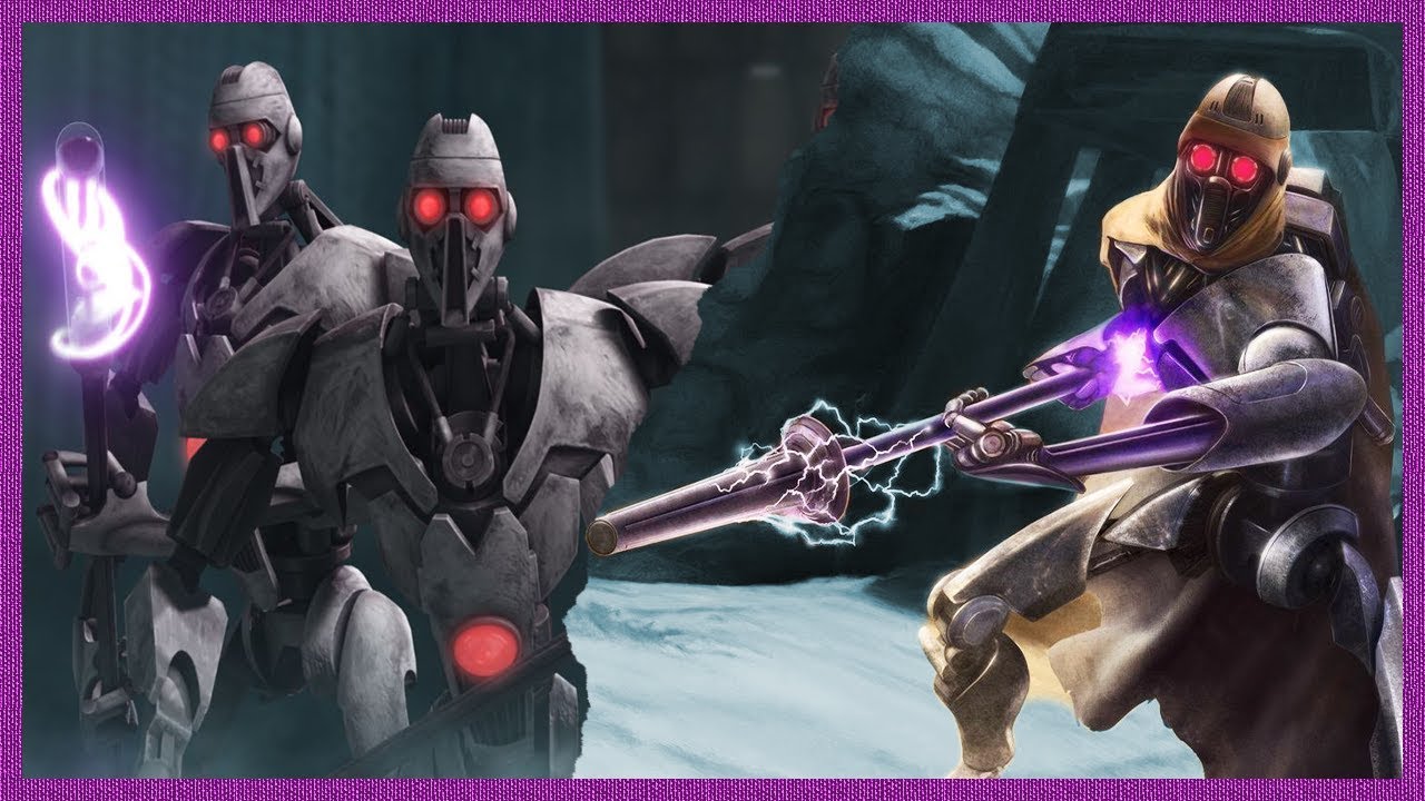 Magna Guard are bodyguard droids for important Separatist personages like General Grevious and Count Dooku. The Star Wars Legion Magna Guard have a whole range of weapons. In the films and Clone Wars series we see them with and without cloaks (and I really question the utility of them having cloaks anywhere they don't need dust/sand covers) but the Shatterpoint ones stick to the cloaks and don't have the option to build them without them, which I would personally have liked.