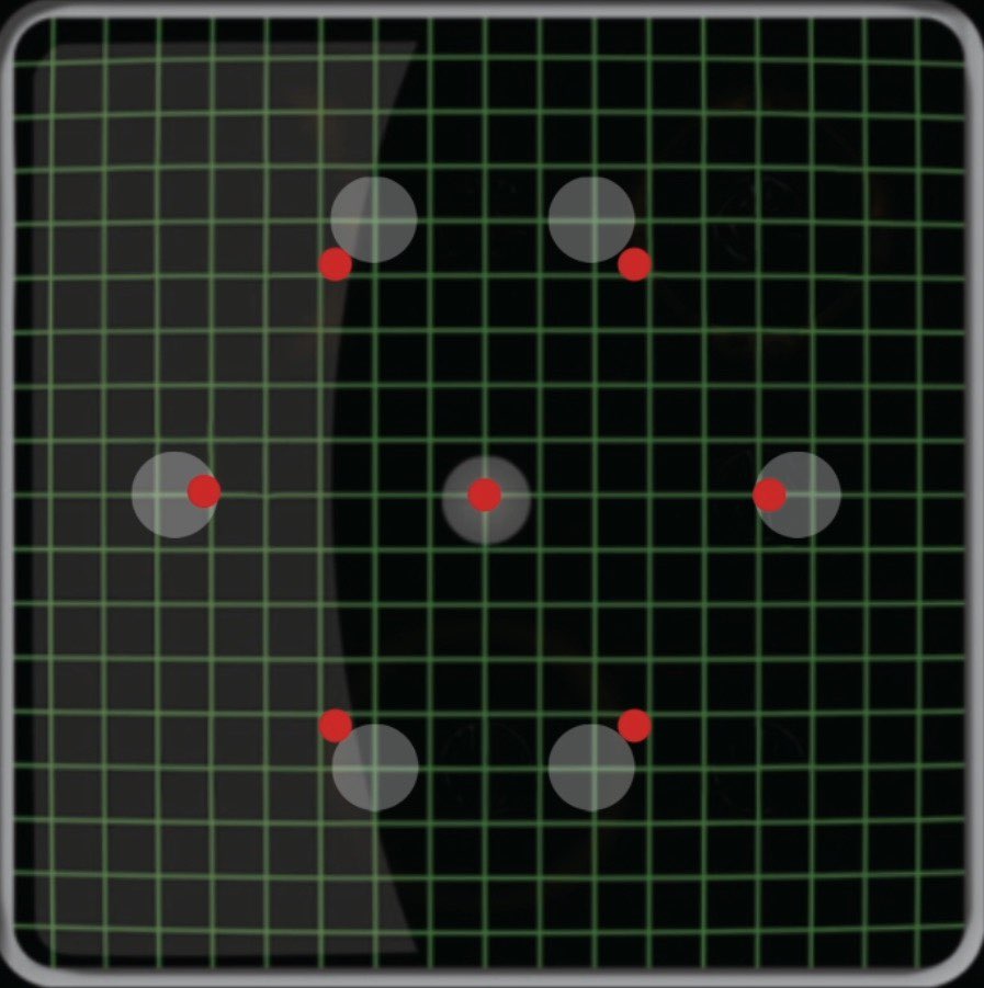 A quick note before we move onto that though: there is a little bit of a visual oddity on the mission card here. The measurements that you're instructed to use to lay out the objectives create a shape that's subtly but significantly different to the one shown on the card - you can see the difference below (the grey circles showing where the objectives are shown to be on the diagram, the red dots showing their centre locations when measured to the instructions). It's not a huge deal, but beware this when planning your terrain layouts for this mission.
