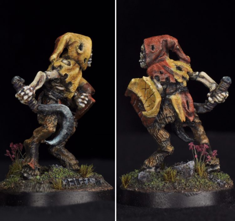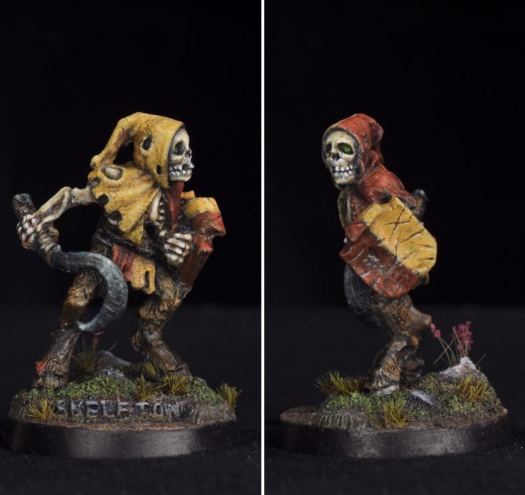 The other piece finished in December is a skeleton from the 1984 Citadel line sculpted by the Perry brothers. This is the first lead mini I’ve painted. I brushed a layer of gloss varnish over the primer after finding it rubbed off easily. It was a lot of fun to do a one off piece like this with such great character. The goat legs sold me on the model. A bit of his metal base with the name of the model on the edge is showing through the ground.