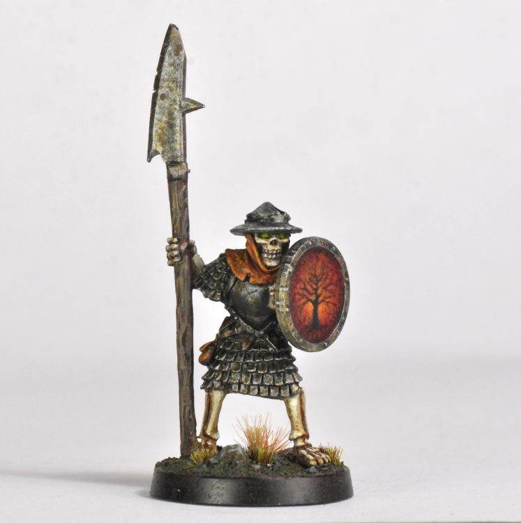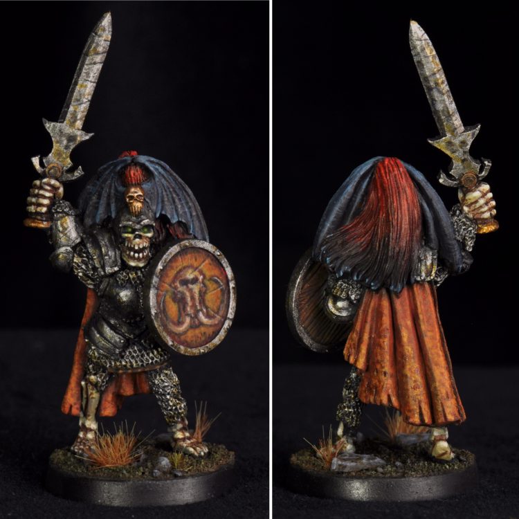 Skeletons and ghosts! Carried the same metal weathering over to these guys. The shield are something I’ve been wanting to do for a while now, inspired by the Games Workshop army painting of the late 80’s. There was a Skeleton Army box set that featured photographs of the skeletons with unique hand painted shields. My bone method is in this article