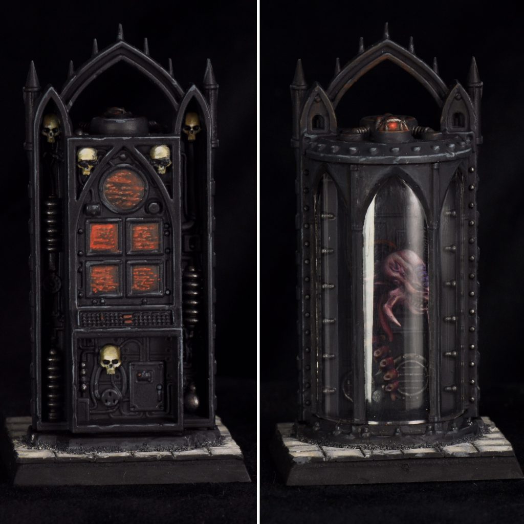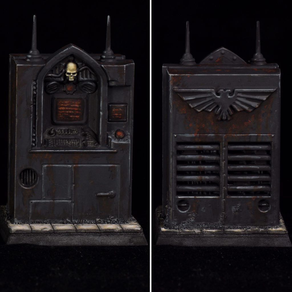 The last of the 40k objectives for this set. These were fun, doing a kind of NMM black on the metal and red screens. I used brown and burnt orange to get the rust effects. The tiled bases are plasticard scored with a Tamiya panel liner scribe.