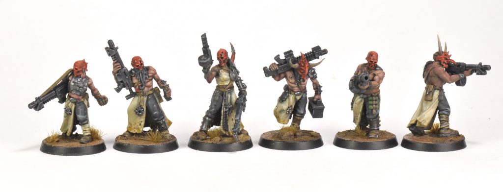 I picked up a box of Cultist of the Abyss to fill out my Helot Cult. (More on them here.) This is a really fantastic kit. Very dynamic poses on them. Their face are replaced with citadel skulls and Kairic Acolytes.