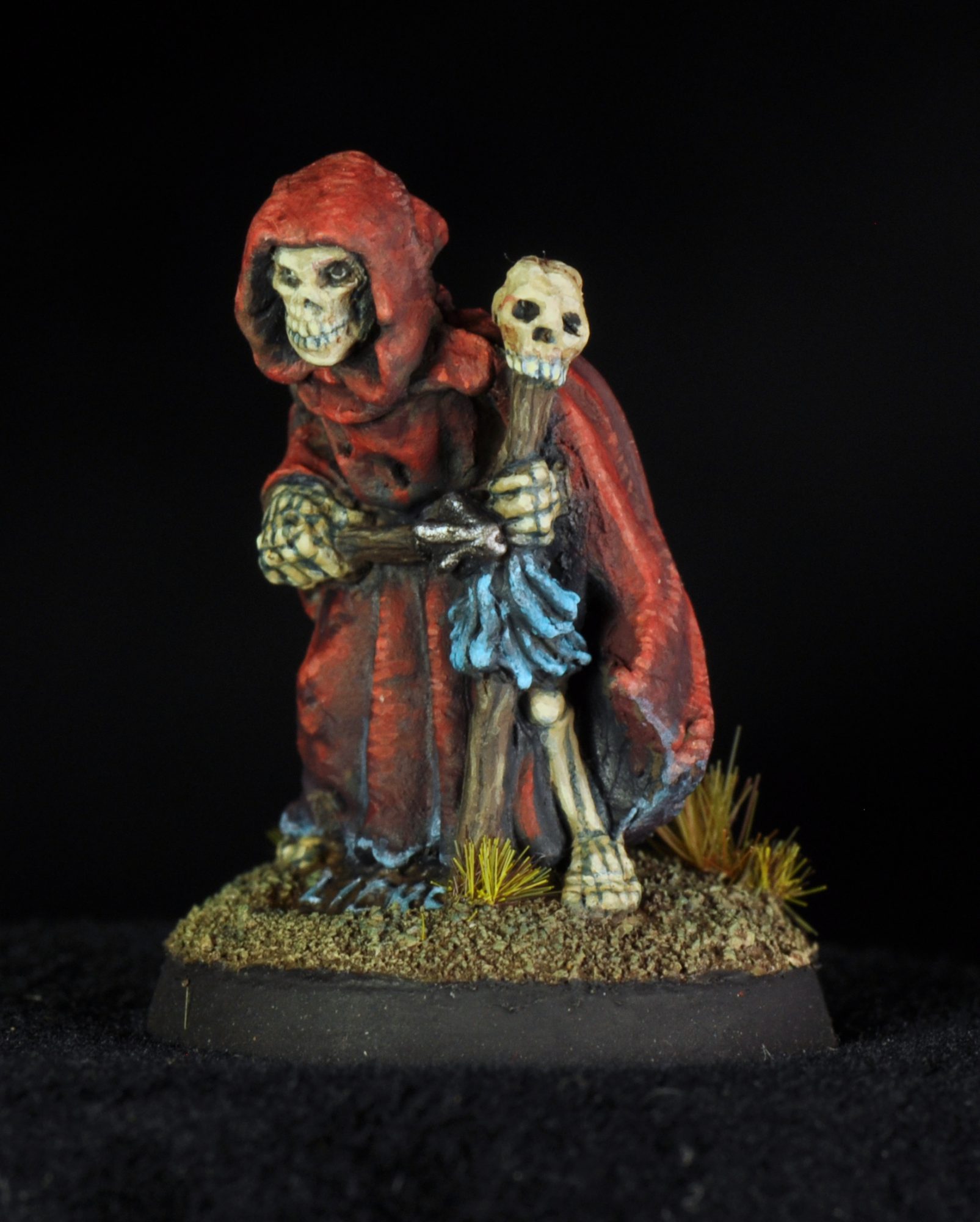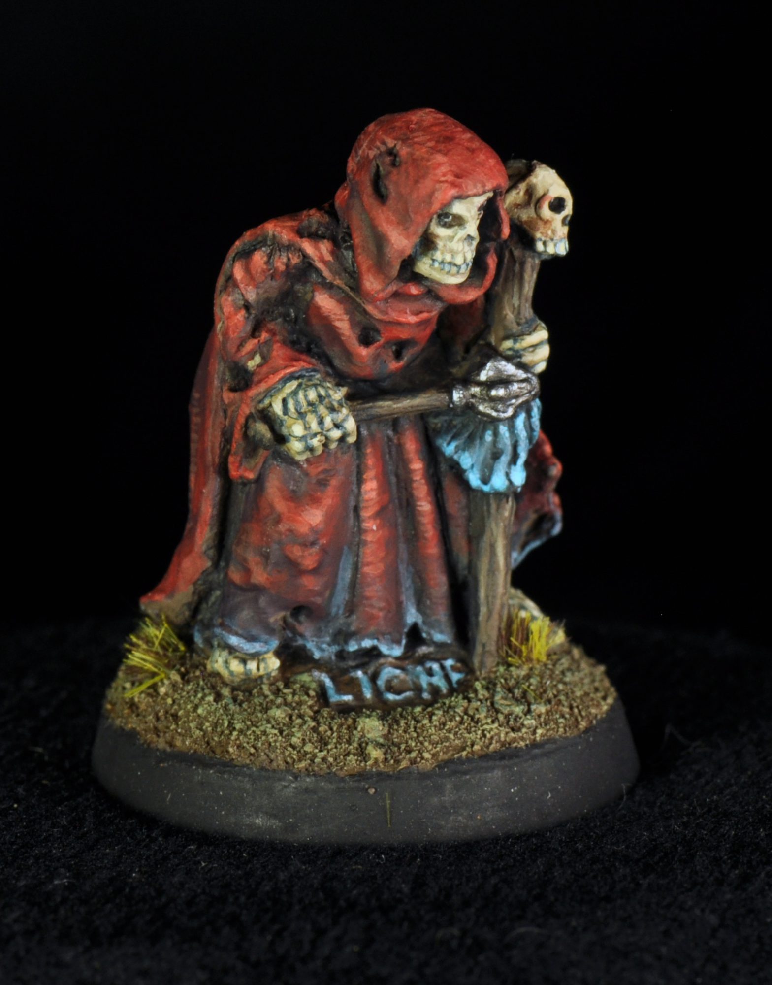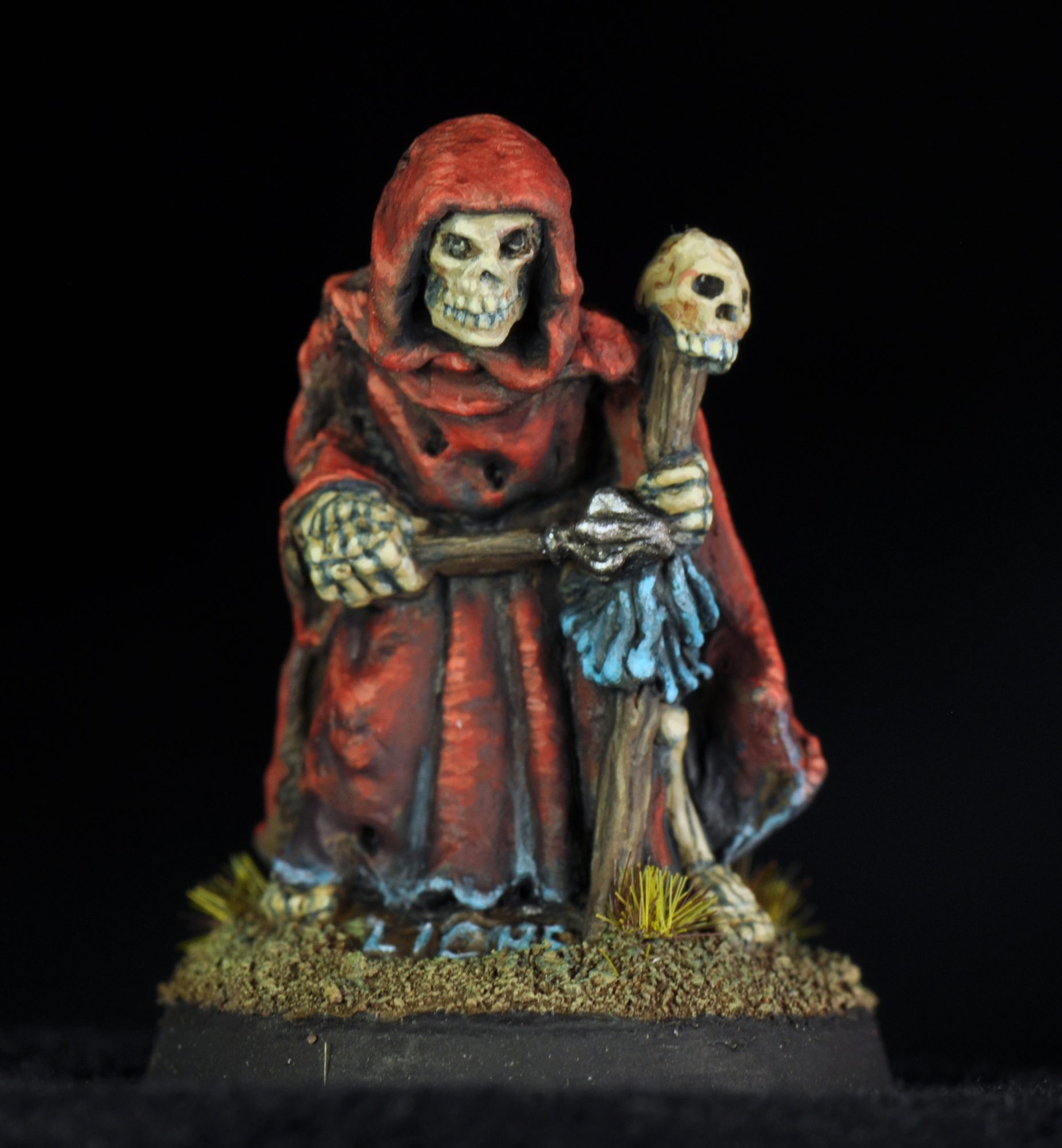This month I have quite a few works in progress that I won’t get into, but I did finish this oldhammer skeleton. It’s Finrum the Liche, a Citadel C17 skeleton from 1984. His face was giving me Misfits vibes so I gave him a nice crimson cloak.