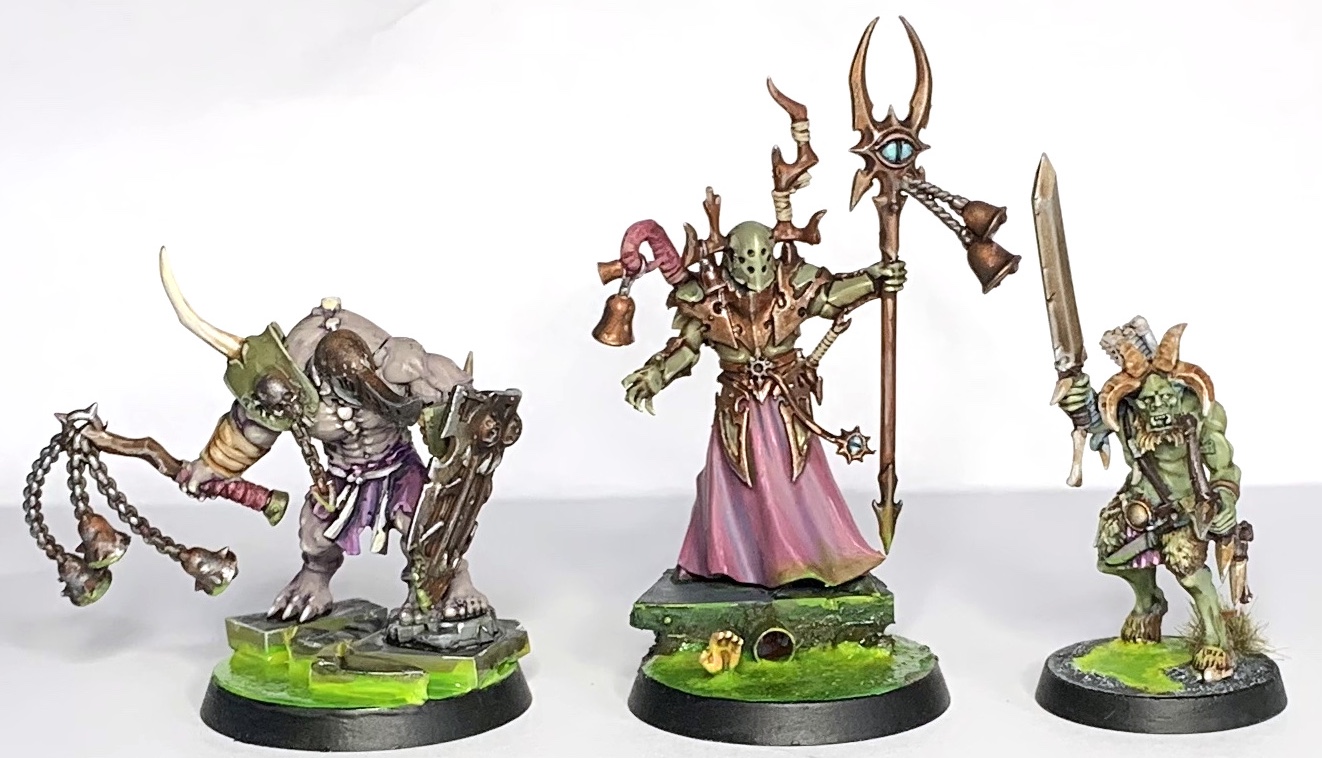 SRM: Basically the same as the above unit, but with one more wound, slower movement, a slightly different means of dishing out mortal wounds, and some better melee attacks from the Gorebeast. Dinosaur gorillas hit harder than horses, who knew. Whichever you choose is personal preference, but both are great choices and benefit from any mark except Undivided.