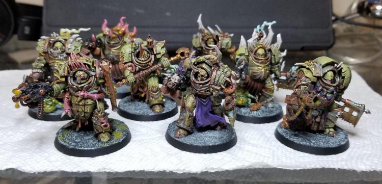 Finally, I circled all the way back to my sweet babies, my first ever army, Death Guard. 20 Terminators and a Lord of Contagion (plus some weapon upgrades) is exactly 1k points. They were all obsec now, and I had seen just how tough they are through some test games with the new Armor of Contempt rule. We could easily score Stranglehold and take To The Last, so our primary and secondary plans were on lock. We were good to go.