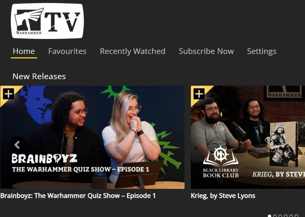 a premium service, Warhammer+, that includes WarhammerTV with loads of programs including animated shows, painting and building advice, and even a trivia game show.