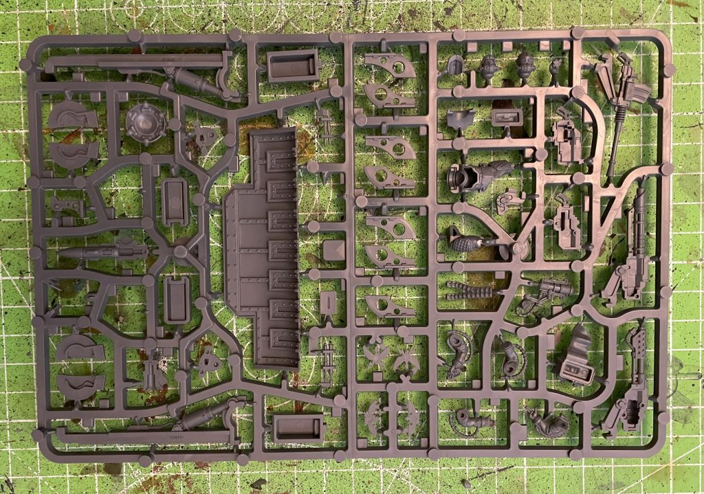 One of the best bits about the Heresy tanks has been the Accessory sprue, the ubiquitous source of Fulmentarus bits and interesting heads for Space Marines. With the Solar Aux getting plastic tanks too, a Solar Aux accessory sprue has followed and it’s even better than the marine one. Three turret weapons, a Solar Auxilia commander (with two arm, head and hand options), a MASSIVE dozer blade and all the usual tank gribblies make it a fantastic set of accessories that I legit can’t wait to have several of. While the tank is (mostly) quite utilitarian, though fancy, the accessories sprue really crams in the gothic and the weird, with a lot of Age of Sigmar-Adjacent detail to ramp up the weirdness of the Solar Auxilia.