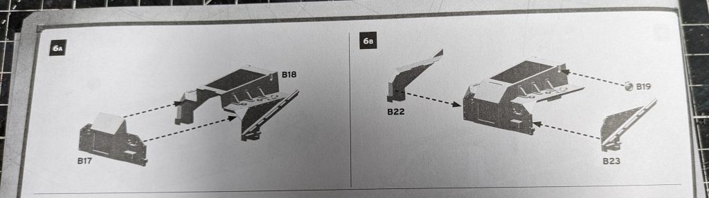 Here's where we start running into serious problems with this kit. For the most part this is a pretty easy build for a kit of its type, and though laborious (especially cleaning up all that trim) it's not especially challenging. However, there are some errors in the instructions which I really can't comprehend. It feels like the kind of thing that should have been picked up in a quick editing pass. Here's the kind of thing I'm talking about: