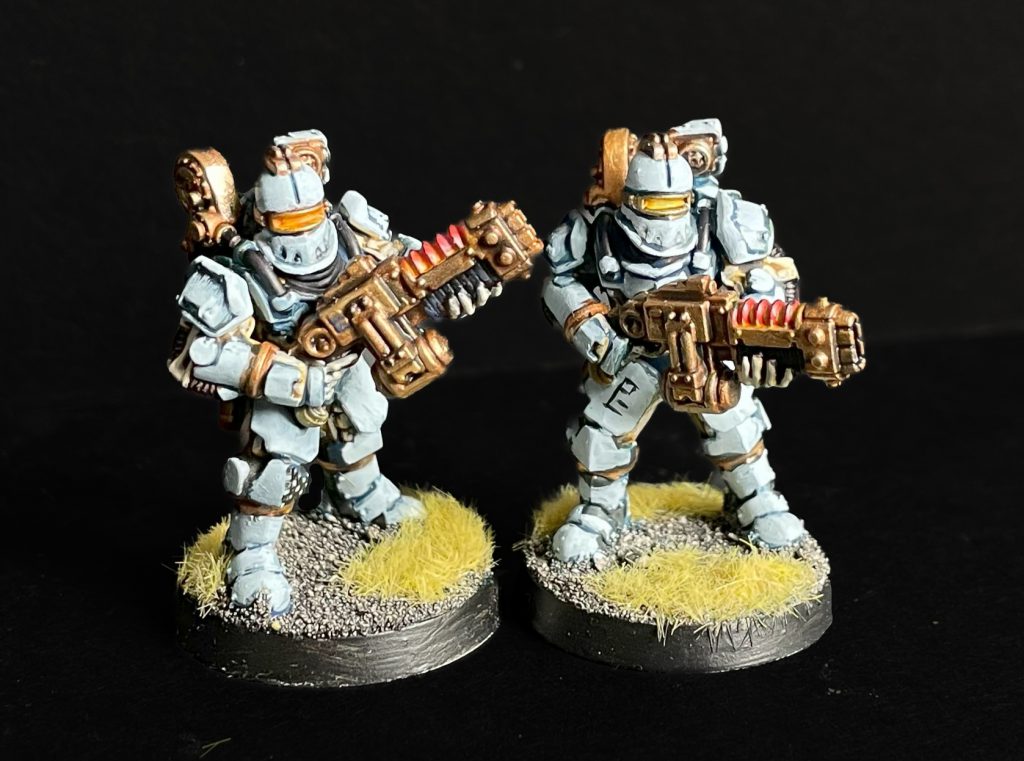 I painted these to go along with my rifle section, but the baby blue that I think really worked there just doesn't work half as well with this amount of armour. A total rethink is on the way.