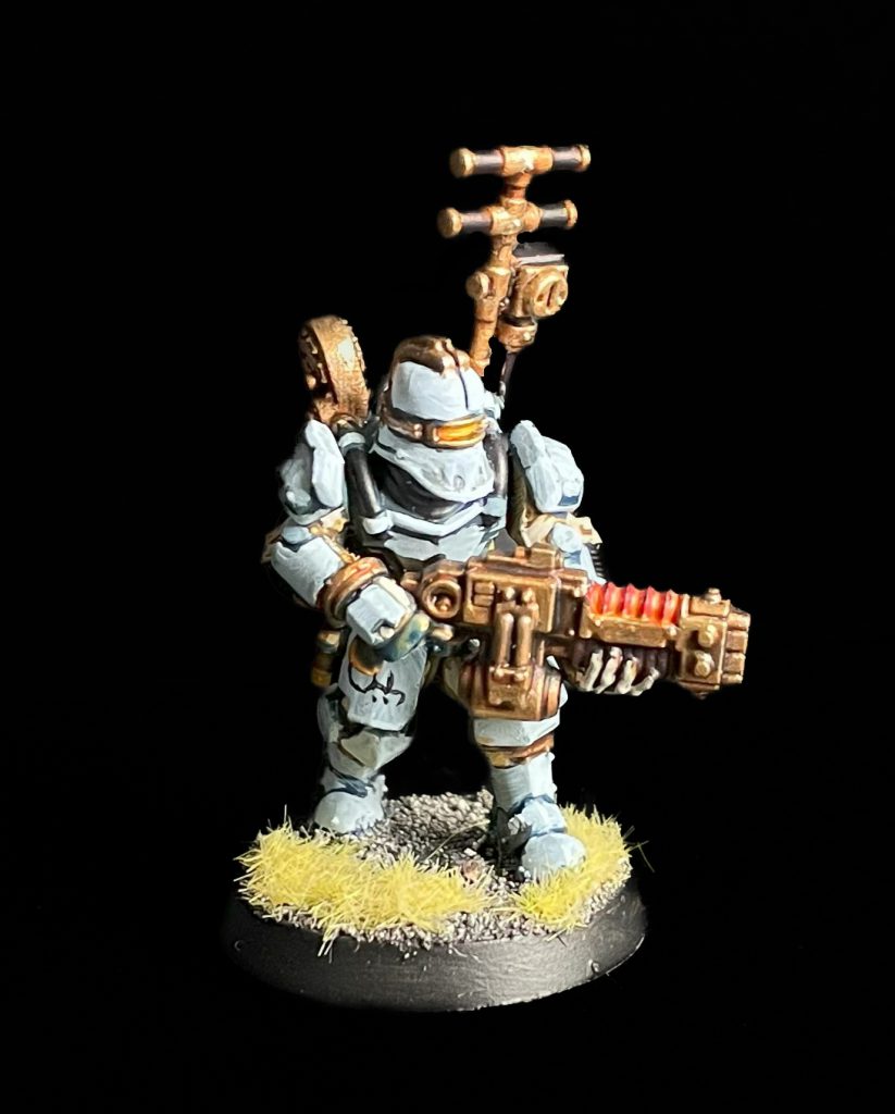 They're reassuringly chunky in a way that really sells their reinforced void armour, especially when compared to their rifle section comrades. They have far more heft and bulk though are still pretty puny compared to a space marine, as they should be! I don't think it's a kit that is going to break any massive design or technological boundaries and that's fine, a solid kit and one that many players will need to pick up at least two of. It'd be nice if you could just buy a twenty soldier kit, or one with axes, volkites, rotors and flamers in, but you can't so no worries.