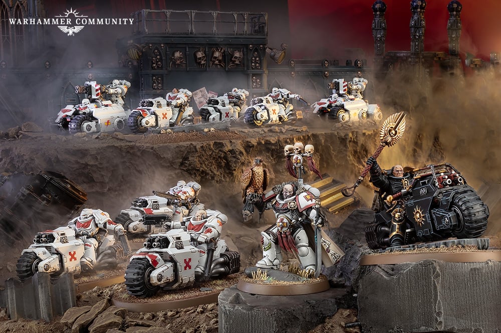 Contents: Kor'sarro Khan, Primaris Chaplain on Bike, 6 Outriders, 2 Invader ATVs