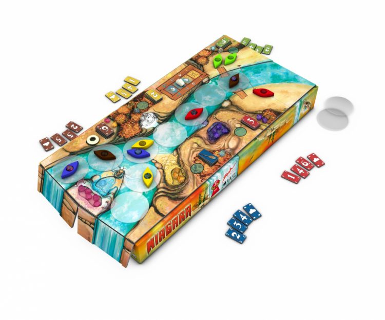 Niagara hovers comfortably within the 9-99 age range with how it looks and plays on the table. There’s enough razzmatazz for kids to opt-in yet enough “there” there for adults to enjoy it too. It's a gateway game as conversation starter that perfects the balance between welcome filler for experienced gamers as well as fun initiation into the hobby for newcomers.