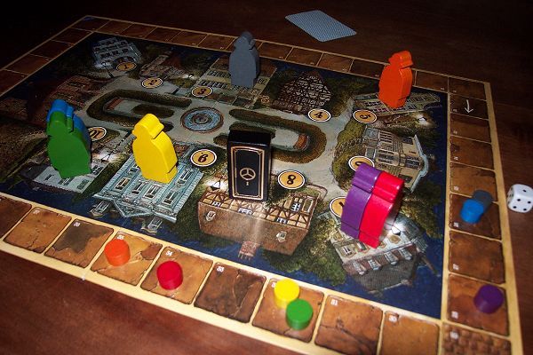 Fun fact: Heimlich & Co. is credited as the first game to include a separate scoring track on the board. Another fun fact: Wolfgang Kramer is a first-ballot Spiel des Jahres Hall of Famer if there ever was one, having designed or co-designed five different SdJ winners and being the only individual to win back-to-back awards two different times. Heimlich & Co. was his first winning title in 1986; in the game players are spies lurking around town and creeping into buildings, racing to be the first to score 42 points. (It's unclear if this number was arrived at mathematically, or if Mr. Kramer was a fan of Douglas Adams.)