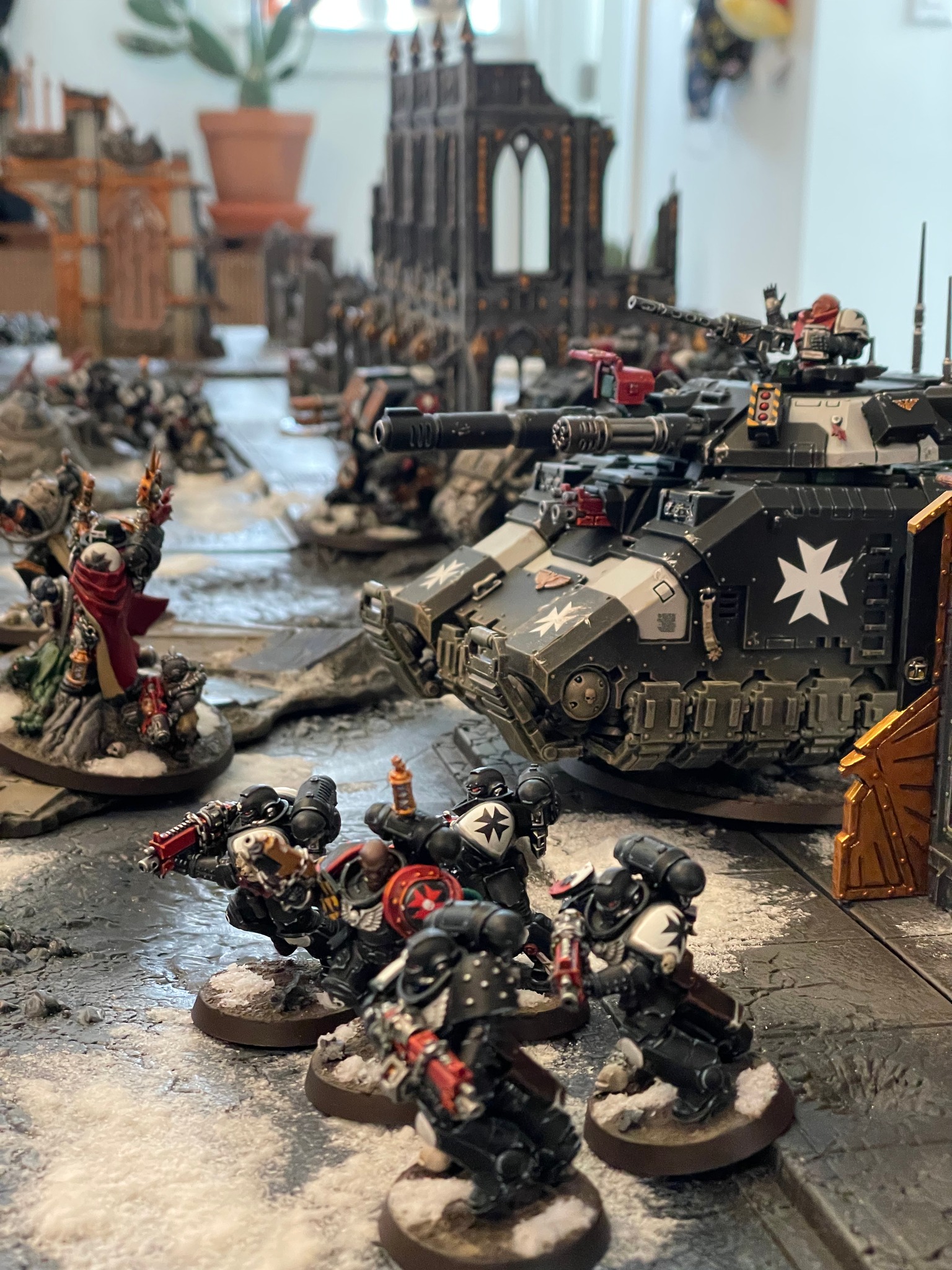 Black Templars vs. Khorne Daemons. Credit: SRM and Tim